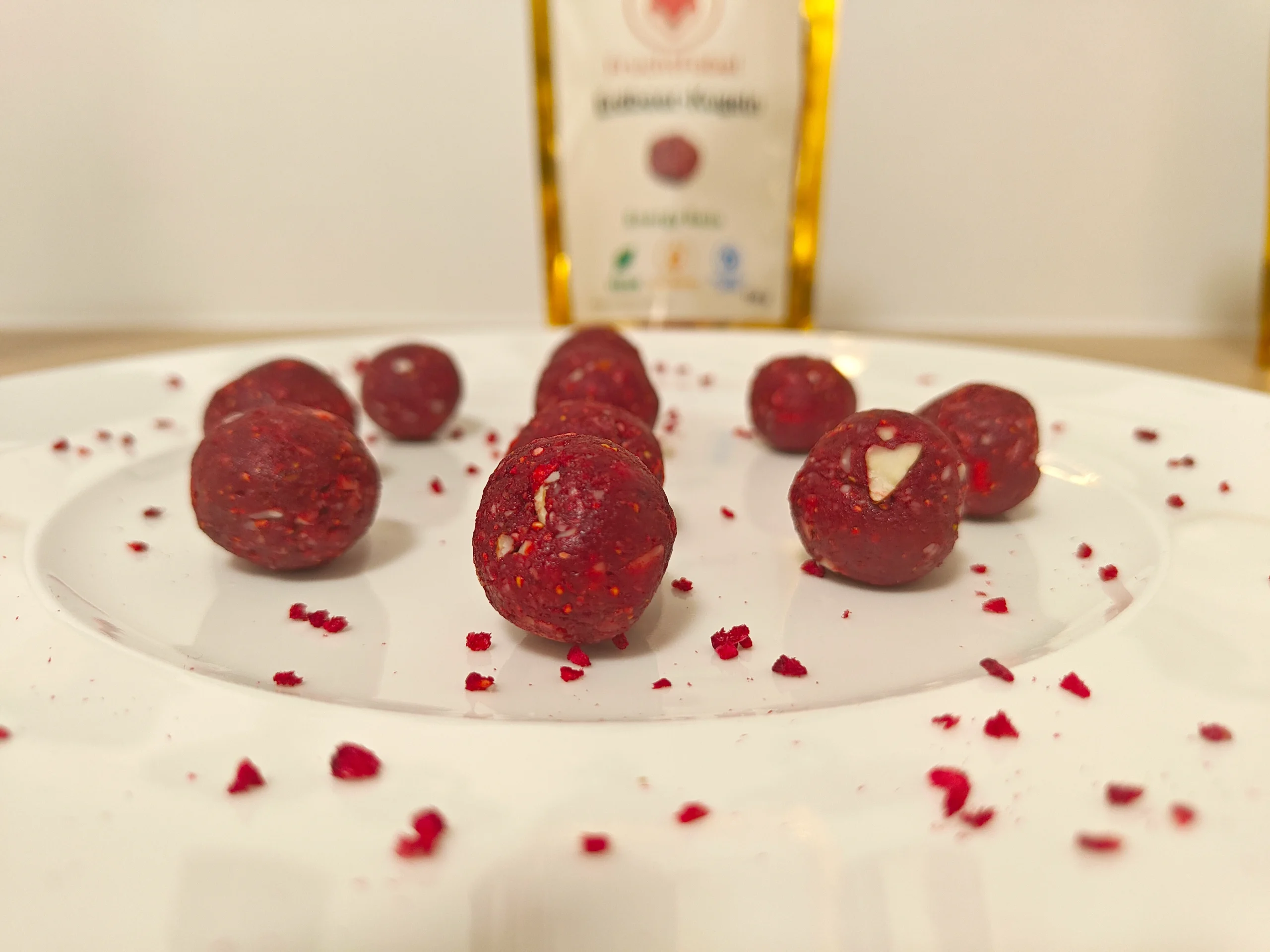 Ob als fruchtiger Energieschub zwischendurch, im Büro oder unterwegs – unsere Erdbeer-Kugeln sind dein frischer Begleiter mit vollem Geschmack und natürlichen Zutaten.